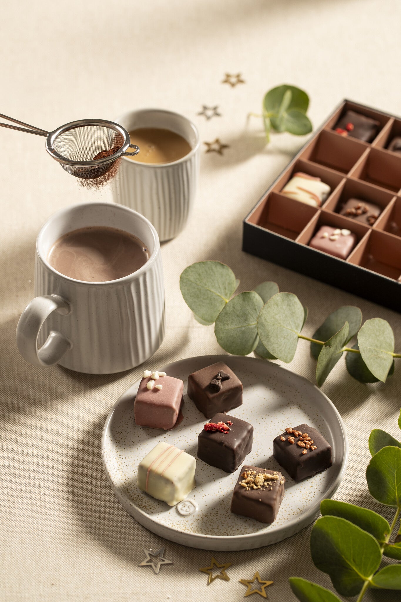 Suiker, roomboter (melk), melkchocoladecouverture (suiker, cacaoboter, volle melkpoeder, cacaomassa, emulgator: sojalecithine, natuurlijk vanille aroma), tarwebloem, ei, donkere chocoladecouverture (cacaomassa, suiker, cacaoboter, emulgator: E322 (soja); natuurlijk vanille aroma), eigeel (scharreleigeel, voedingszuur: E330; conserveermiddel: E202), cacaopoeder (cacaopoeder, zuurteregelaar: E501), kaneel crunch (glucosestroop, suiker, water, kaneelpoeder), 0,5% speculaaskruiden (97% specerijen, sinaasappelschillen), vanillesuiker (suiker, aroma), zeezout.