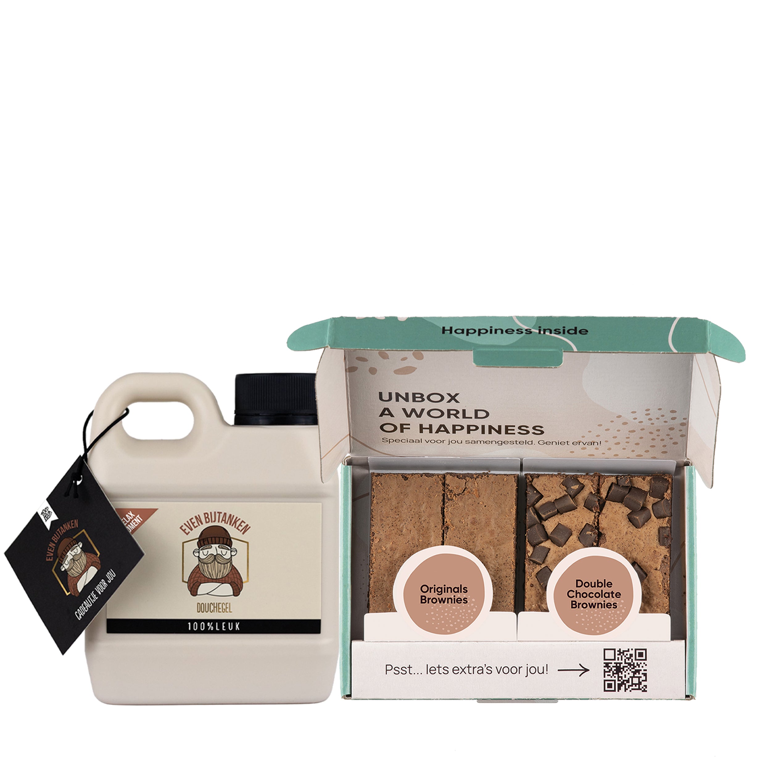 Een heerlijke browniebox gecombineerd met een stoere 'jerrycan' douchegel voor een ultiem verwenmoment. Het perfecte cadeau voor mannen, leuk om te geven en nóg leuker om te krijgen.