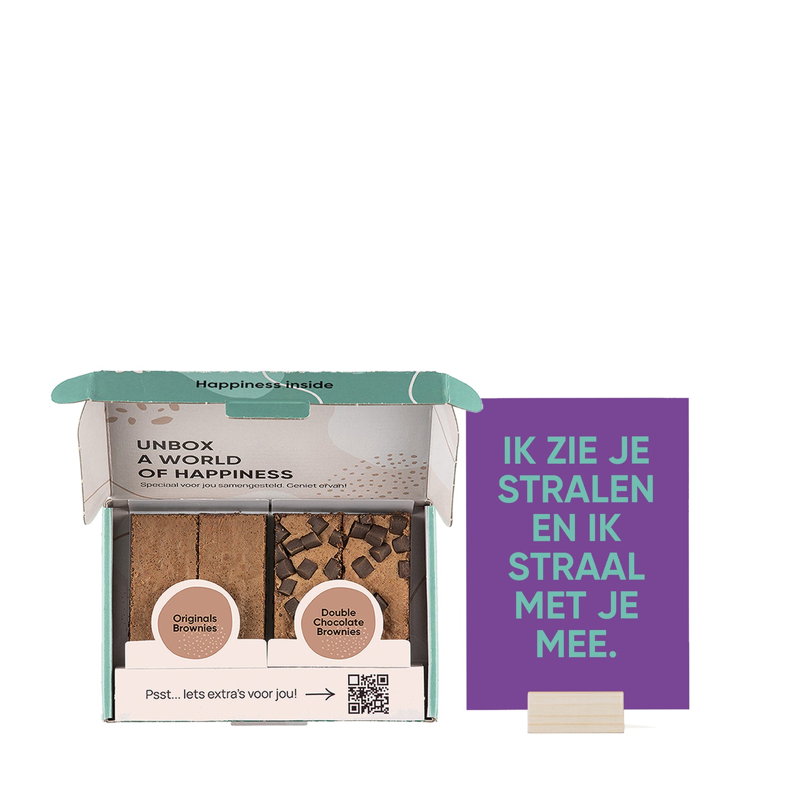 Soms wil je gewoon laten weten hoe trots je bent op iemand. Met de Ik zie dat je straalt en ik straal met je mee cadeaubox geef je een bundel positiviteit, gevuld met heerlijke brownies en een liefdevolle boodschap. Het perfecte cadeau om iemand te feliciteren, een succes te vieren of gewoon omdat ze het verdienen om in het zonnetje gezet te worden.