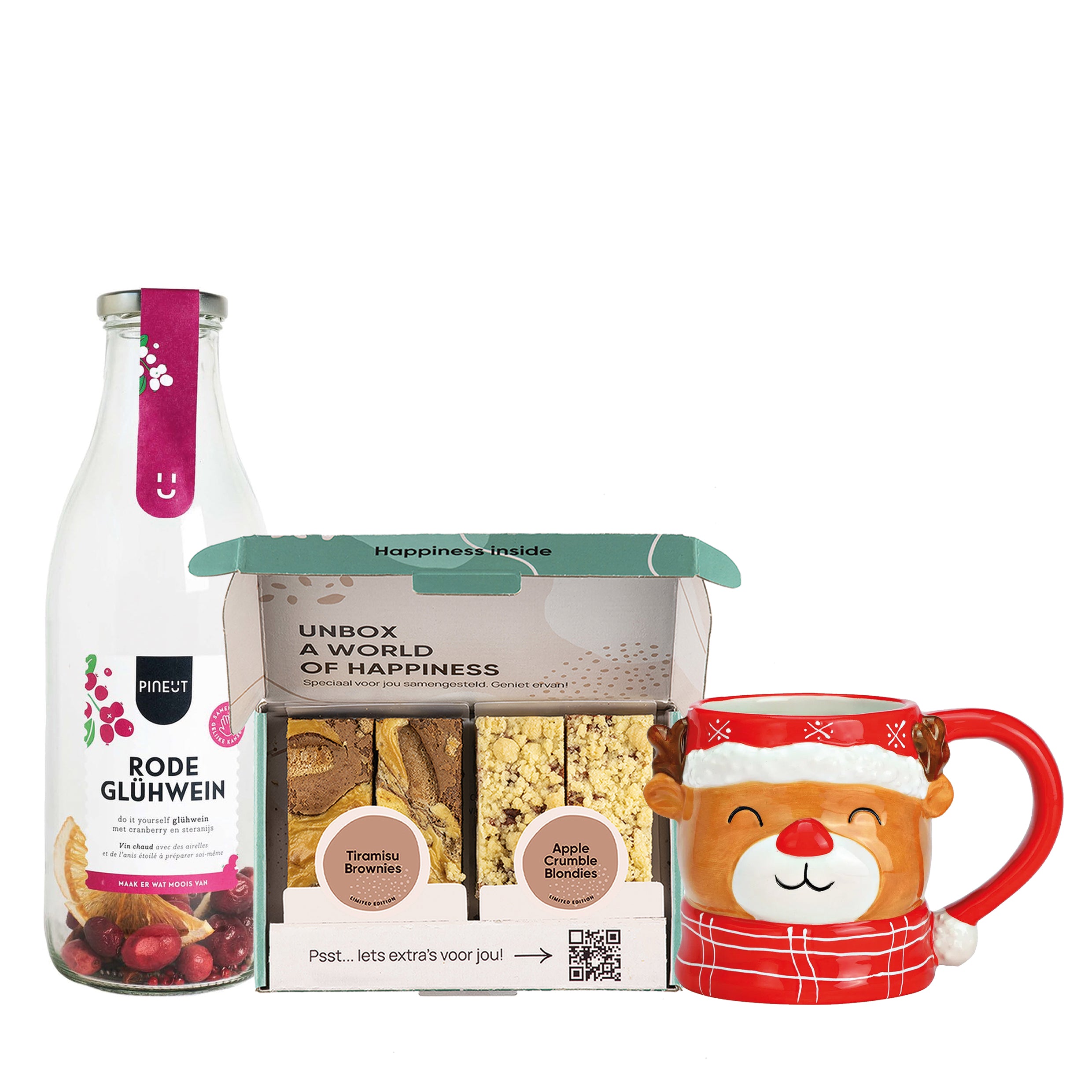 Luxe, versgebakken brownies die smelten op je tong, een zorgvuldig geselecteerde thee die je helemaal in de kerstsfeer brengt, en – de ster van de show – een foute kerstmok waar je stiekem het hele jaar uit wilt drinken.