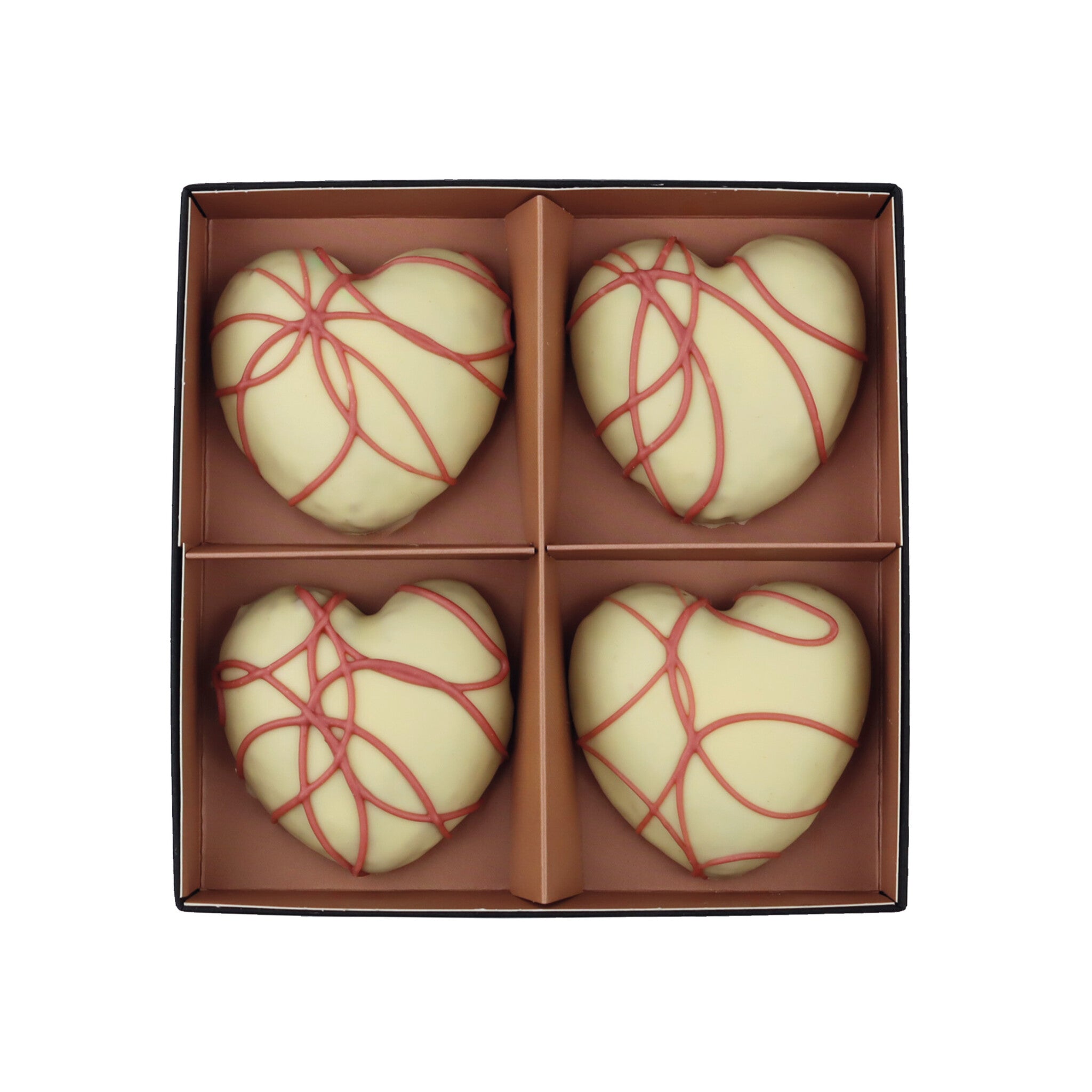 Een box handgemaakte Brownie Hearts bevat 4 stuks.